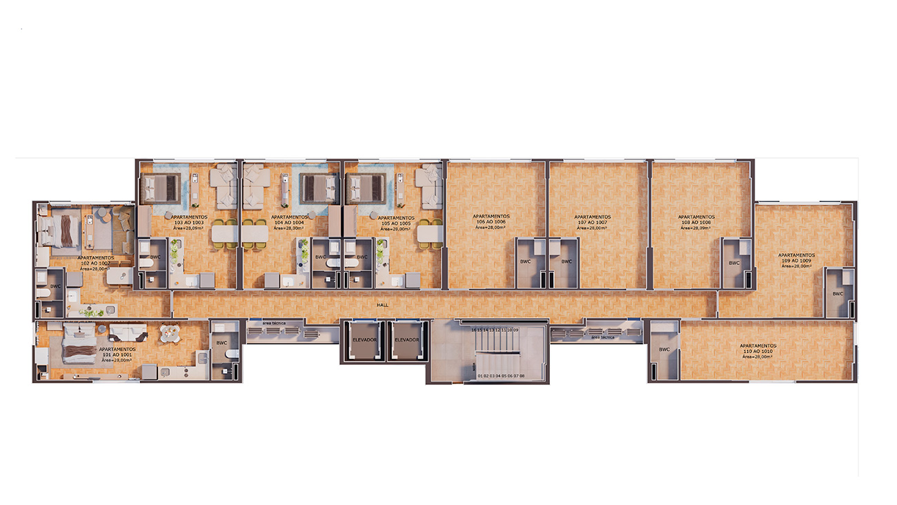 - Studios com 28m²
